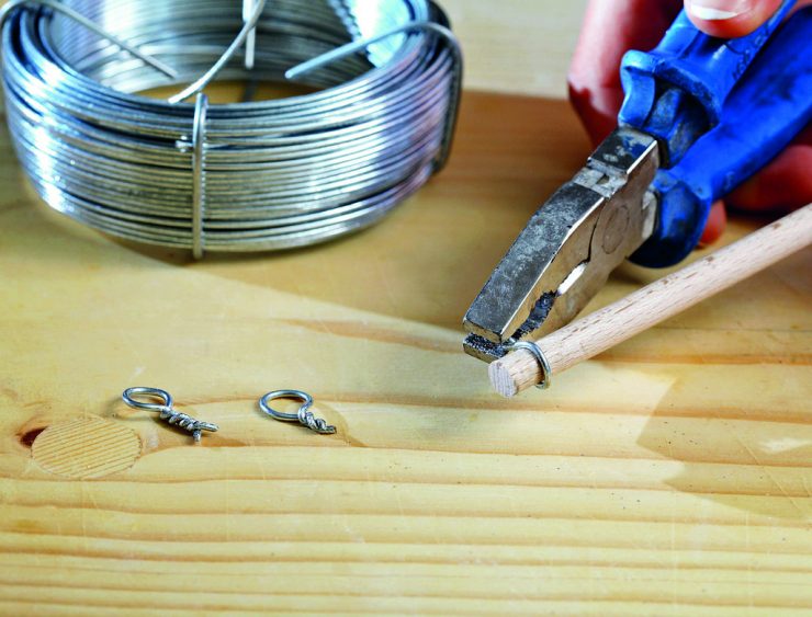 1. Z tenkého drátu vyrobte ouška na zavěšení. Drát omotejte jedenkrát kolem hůlky nebo tužky a konce zatočte kleštěmi.