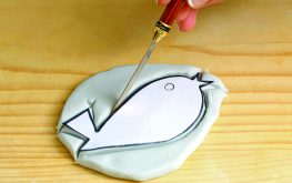 4. Na papír překreslete obrys ptáčka a vystřihněte ho. Maketu položte na hmotu a nožíkem nebo špachtlí tvar vyřízněte.