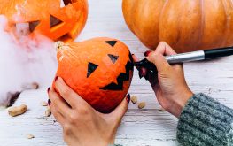 1 Vyberte si vhodnou zdravou dýni – nejlépe se maluje na takovou, která má hladký povrch bez škrábanců či jiných poškození. Měla by mít také rovnou spodní stranu, aby dobře seděla.