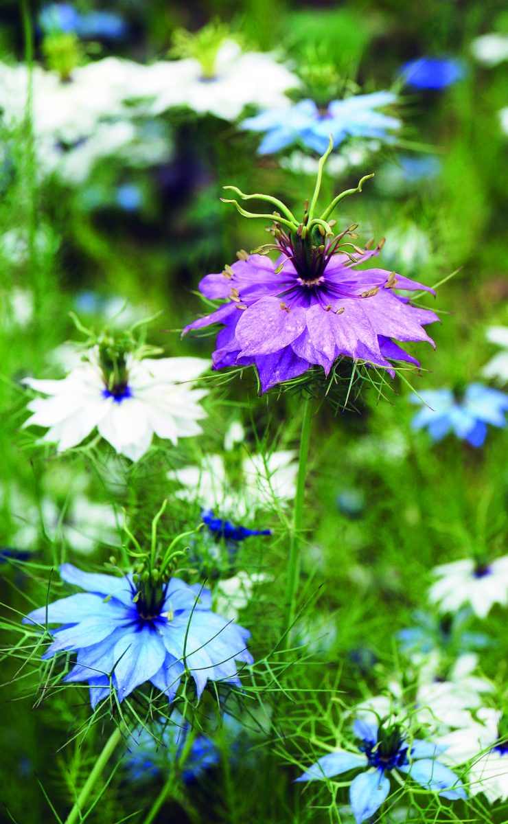 Letní scénku obohatí houfy jemných černuch damašských (Nigella damascena), jejichž jednoduché či plné bílé, růžové, modré i dvoubarevné květy obklopené závojem jehlicovitých listenů vypadají jako šperky. Po odkvětu vznikají stejně dekorativní zelené měchýřkovité tobolky, ve kterých po ztvrdnutí chrastí černá drobná semínka.
