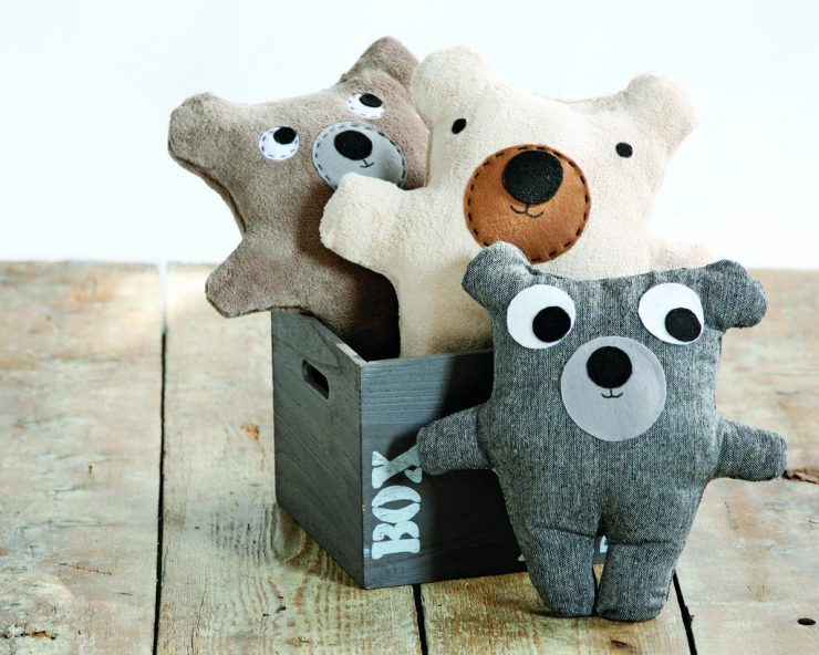 l. Látku přehněte napůl, lícovou stranou směrem ven, a nakreslete na ni maketu medvěda.