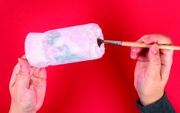 5 Nezapomeňte ubrousek přilepit i na dno sklenice. V horní části sklenice přesahující ubrousek odstřihněte.