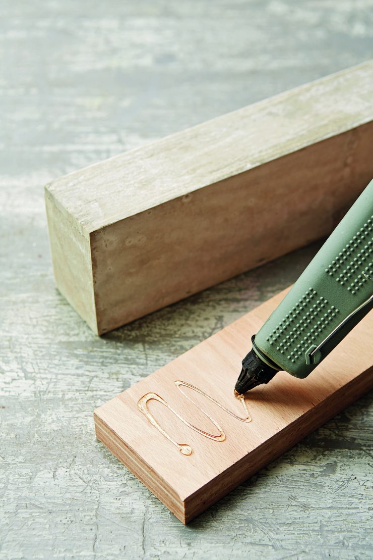 1 Přilepte dřevěnou lať tavným lepidlem zespodu na dřevěnou krabici.