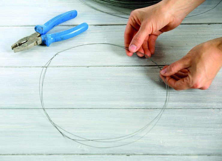 Ustřihněte si tak dlouhý kus drátu, jak velký chcete mít věnec, a zformujte ho do tvaru kruhu. Nejlépe ve třech vrstvách, aby byl základ pevnější.
