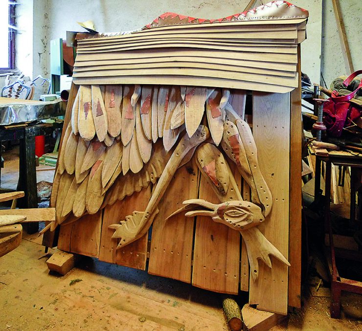 „Po šedi minulého režimu toužila udělat něco pěkného pro vozíčkáře a oslovila Davida Vávru. On viděl kdesi článek o mých věcech a s tou úžasnou dámou mě seznámil. Dělal jsem mohutný vstup a velký stůl v podobě orla pro její stacionář v Horním Bezděkově u Kladna. A loni ještě lavice. Mám tam dokonce svou stálou galerii,“ chválí si pan architekt spolupráci. Dobře si rozuměl i s bývalou starostkou nedaleké Libáně, sochařkou, pro niž rekonstruoval roubenku.
